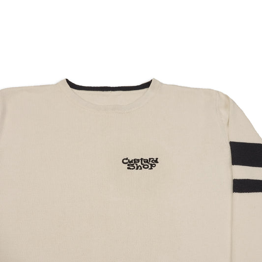Custard Reclaimed White Striped Jumper | Size Large